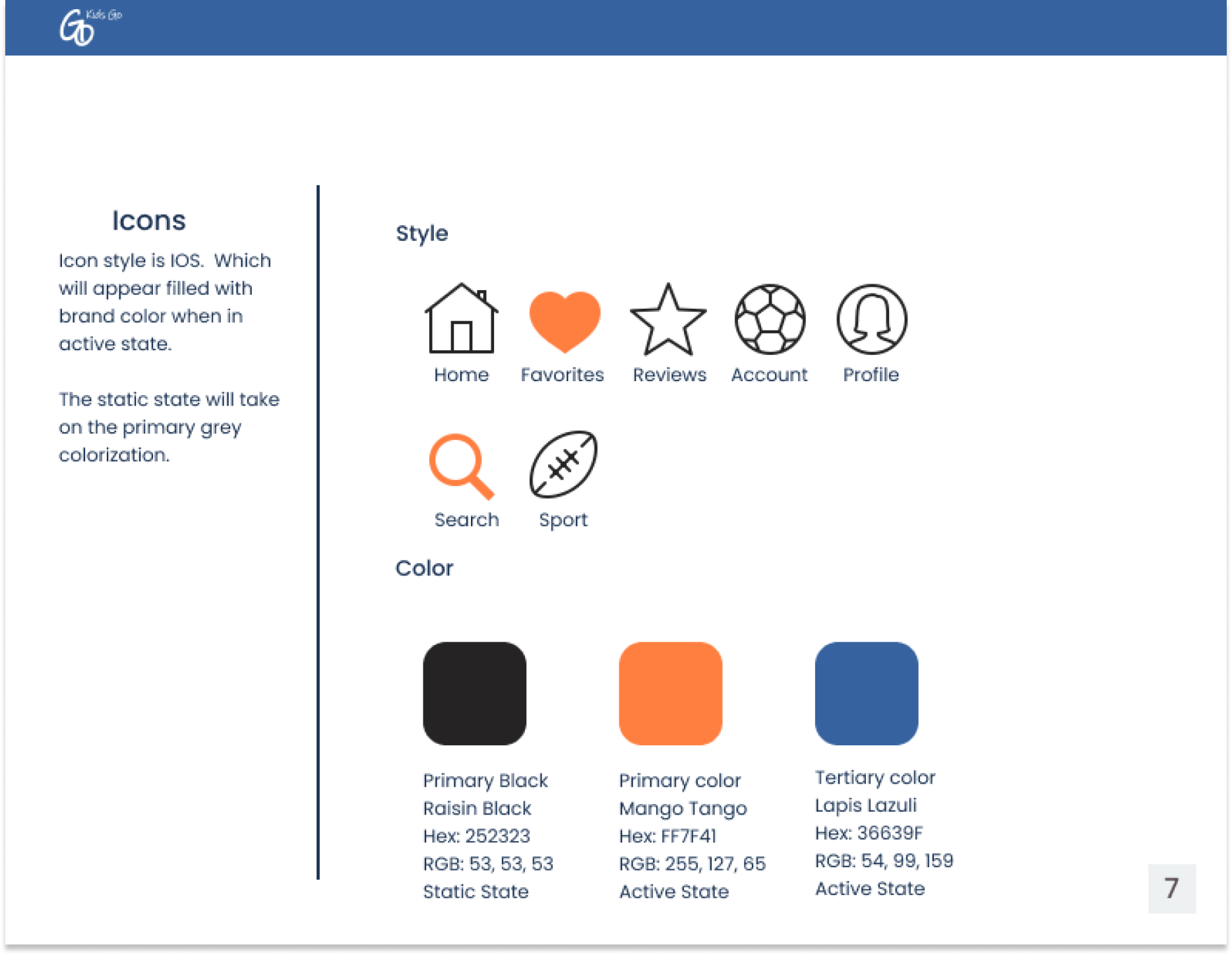 I developed a style guide to help developers and designers maintain consistency in branding among colors, UI elements, typography and imagery.